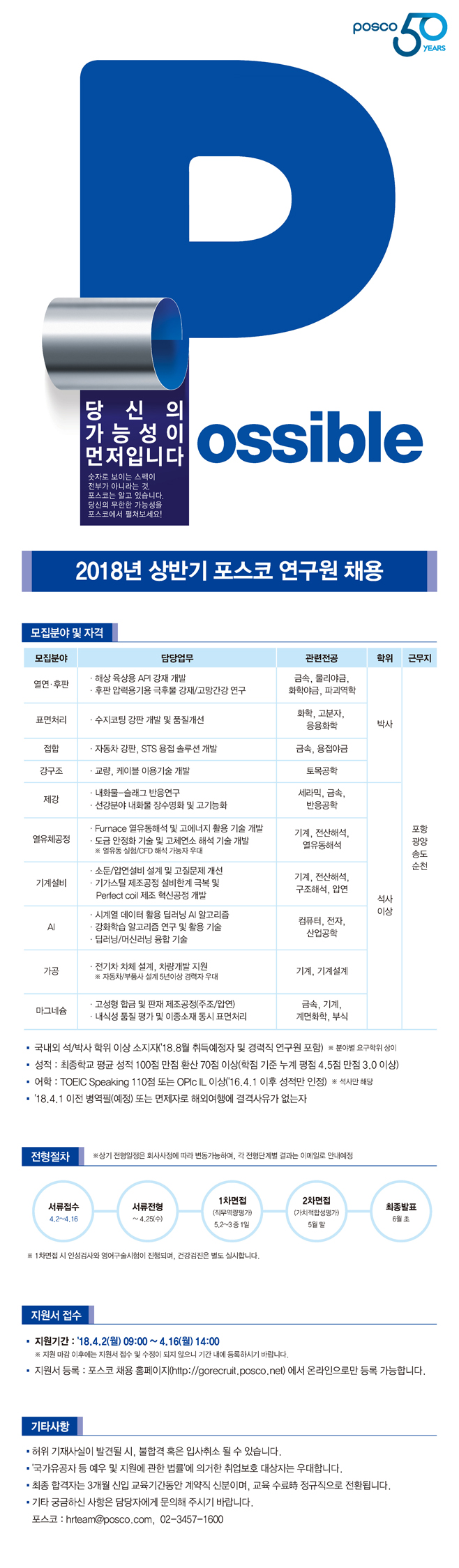 『2018년 상반기 POSCO 연구원 채용』 모집을 홍보요청드리고자 합니다.
