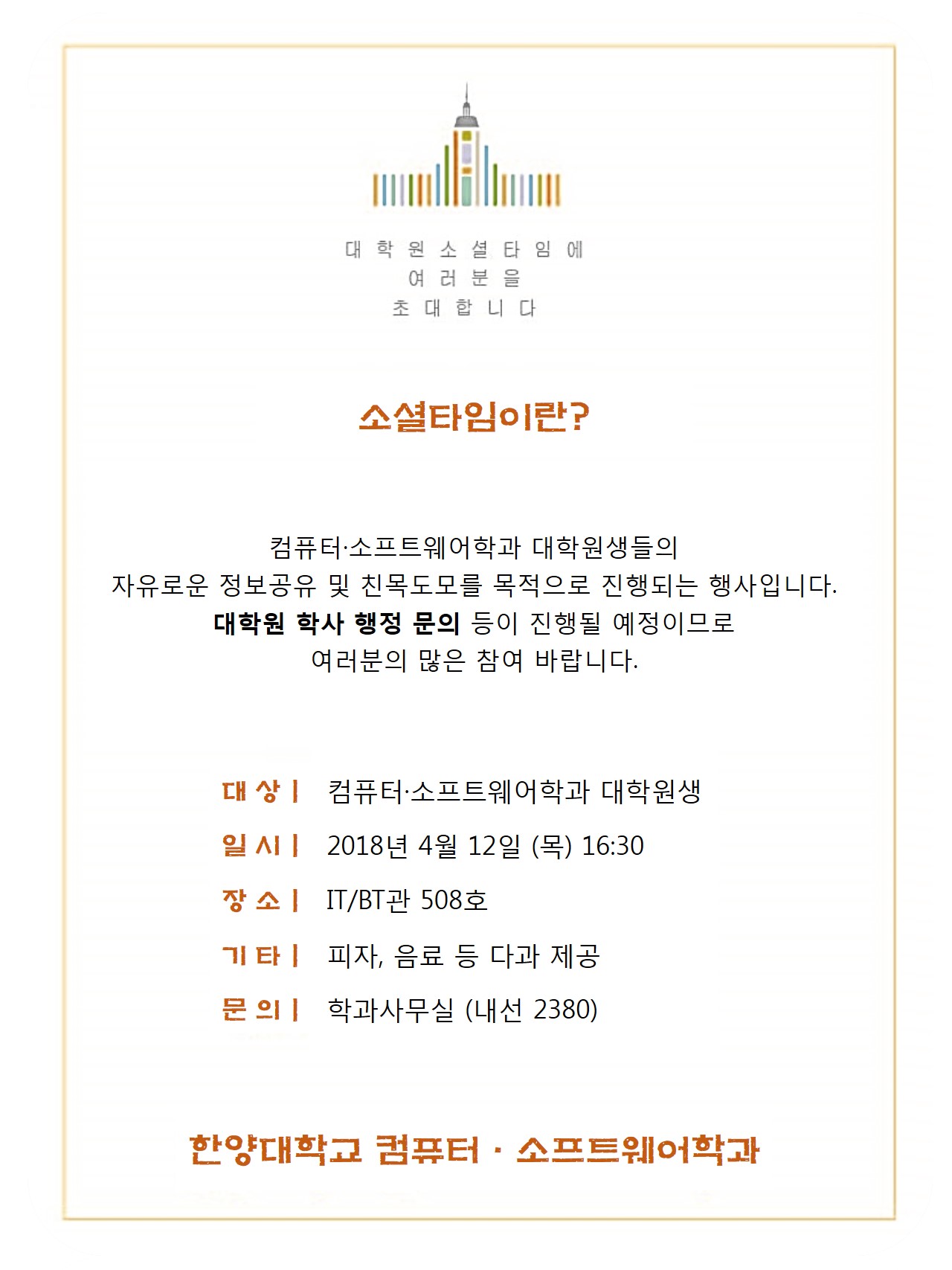 [Cslabs] Fwd:[대학원] 2018 소셜타임 안내